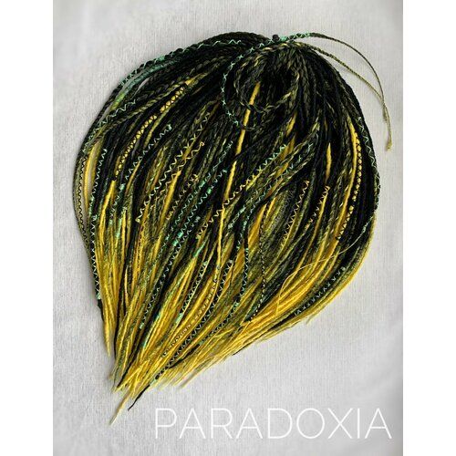 НАЙТИ ВЫГОДНЕЕ - Комплект де дред/кос/твистов CyberPunk Yellow, крючковые, тонкие, ручная работа, с украшением в стиле киберпанк/бохо/хиппи, унисекс