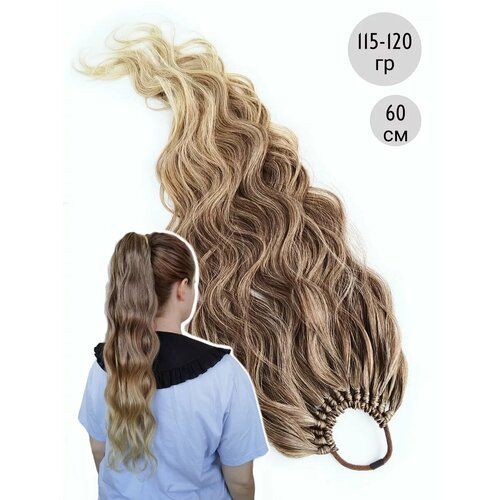 Хвост из термоволокна на резинке идеально подходит для быстрой смены образа. Пряди легко расчесываются обычной расческой и выглядят как натуральные волосы.