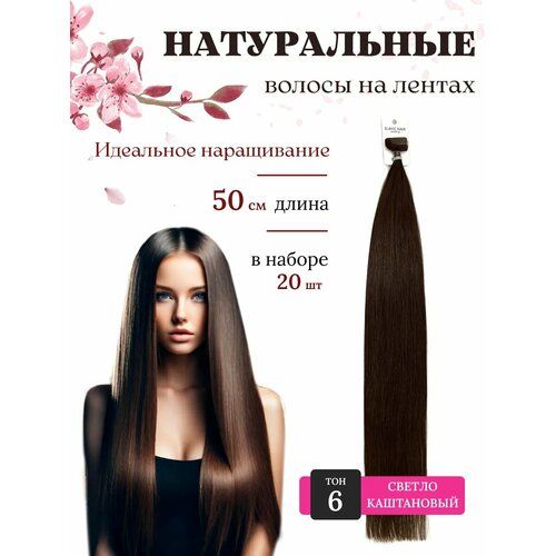 НАЙТИ ВЫГОДНЕЕ - Натуральные волосы для наращивания на лентах 6 тон 50см 20 шт / Slavic Hair company