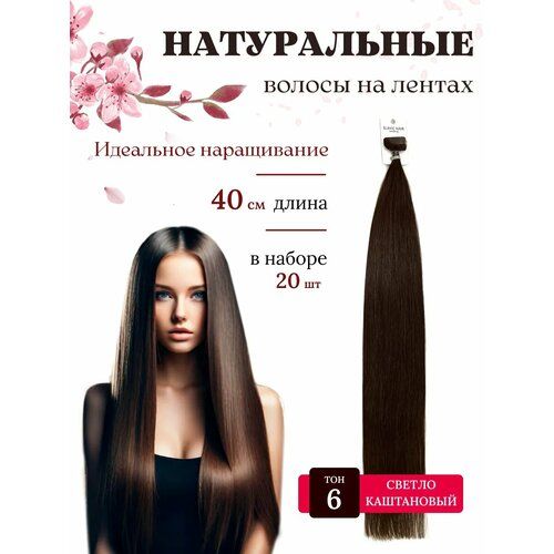 НАЙТИ ВЫГОДНЕЕ - Натуральные волосы для наращивания на лентах 6 тон 40см 20 шт / Slavic Hair company