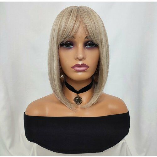НАЙТИ ВЫГОДНЕЕ - Парик, женские, искусственные волосы, стрижка каре, длина пряди 30 см, жемчужный цвет