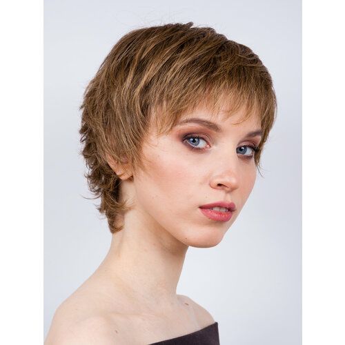 Уникальная филированная стрижка делает этот парик стильным и неповторимым. Длина волос на макушке составляет 7-9 см, а боковые пряди выстрижены короче 5-6 см, что позволяет слегка закрывать уши. От макушки до затылка парик профилирован, что придает ему дополнительный объем.