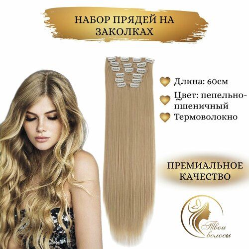 НАЙТИ ВЫГОДНЕЕ - Накладные волосы, пряди на заколках-клипсах, 24/27 Пепельно-пшеничный