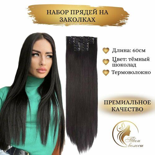 НАЙТИ ВЫГОДНЕЕ - Накладные волосы, пряди на заколках-клипсах, 2 тёмный шоколад