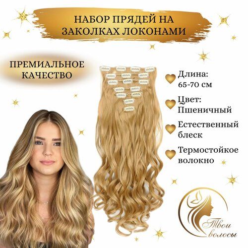 НАЙТИ ВЫГОДНЕЕ - Накладные волосы локонами 65 см, пряди на заколках-клипсах, Пшеничный (27 тон)