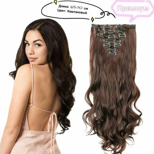 НАЙТИ ВЫГОДНЕЕ - Накладные волосы локонами 65 см, пряди на заколках-клипсах, Каштановый (тон 2/33)