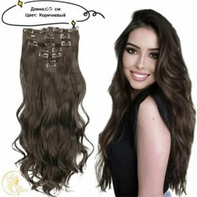 НАЙТИ ВЫГОДНЕЕ - Накладные волосы локонами 65 см, пряди на заколках-клипсах, Коричневый (4 тон)