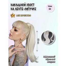 Хвост из искусственных волос на липкой ленте длиной 45см. Это самый простой и быстрый способ в несколько раз увеличить длину и объем волос без лишних усилий. Накладной хвост предназначен для самостоятельного крепления. Хвост-шиньон отлично подойдет для создания вечерней или деловой прически, а также тем девушкам, которые не любят носить распущенные волосы
