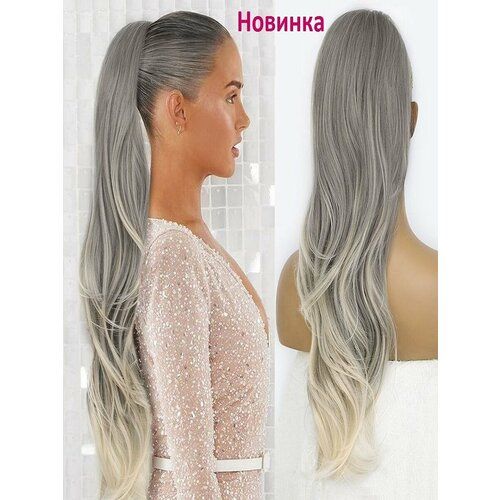 НАЙТИ ВЫГОДНЕЕ - Шиньон хвост на резинке накладной длинный на пучок омбре пепел