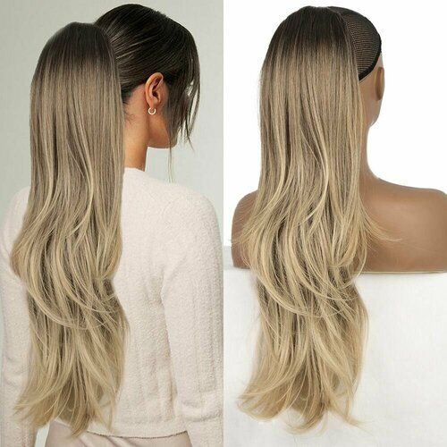НАЙТИ ВЫГОДНЕЕ - Шиньон хвост на резинке накладной длинный на пучок омбре