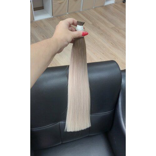 Натуральные волосы для наращивания 50см 100г, категория люкс корень 8, длина цвет 60, пористая структура, фабричный окрас. Густые кончики