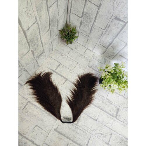 Шиньон на проволоке-гребешке темно-коричневого цвета с рыжими оттенками - это стильный аксессуар для создания разнообразных образов.
