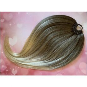 Афрохвост съемный на резинке цвет омбрэ русый с блондом размер S выполнен из искусственного низкотемпературного материала - качественного канекалона премиум класса. На вид и на ощупь близко схож с натуральными волосами. Хвост изготовлен вручную, в том числе и замешивание цветов. Прочные крепления прядей на достаточно тугой резинке.