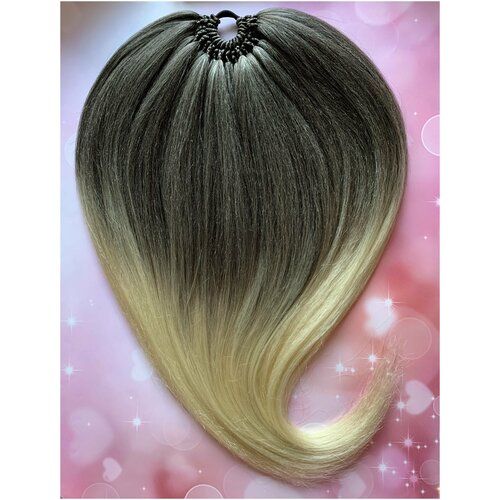 Афрохвост съемный на резинке цвет горький шоколад с омбрэ блонд размер S выполнен из искусственного низкотемпературного материала - качественного канекалона премиум класса. На вид и на ощупь близко схож с натуральными волосами. Хвост изготовлен вручную, в том числе и замешивание цветов. Прочные крепления прядей на достаточно тугой резинке.