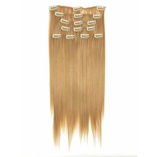 Длина 45 см. Накладные пряди на заколках-клипсах помогут Вам быстро и легко нарастить волосы, создать прическу на свадьбу, вечеринку или свидание, сделать нужный объем и выглядеть женственно и шикарно Волосы на заколках-клипсах выполнены из термоволокна (термостойкие искусственные волосы) - это современный материал, не имеет искусственного блеска, выглядит, как натуральные волосы. Термоволокно выдерживает температуру до 180 градусов. Его можно завивать, укладывать феном или выпрямлять утюжком. В наборе 8 прядей различной ширины.