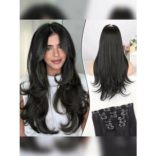 НАЙТИ ВЫГОДНЕЕ - Набор черных прядей с локонами на заколках, длина 65 - 70 см