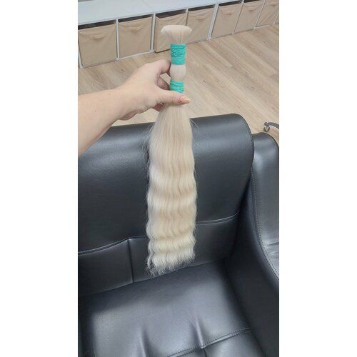 Натуральные волосы для наращивания, 55см , одноголовая славяночка, блонд без желтизны. 132г, шелковистая структура.