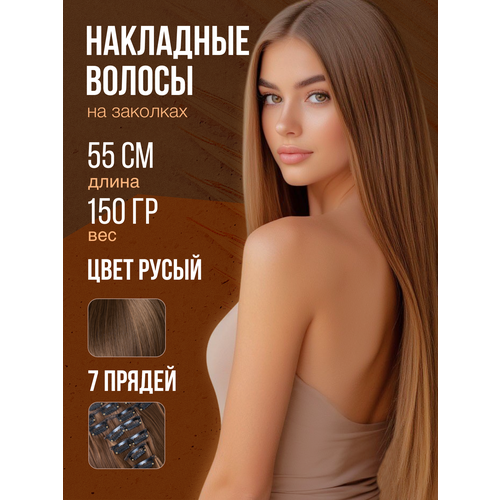 НАЙТИ ВЫГОДНЕЕ - Накладные волосы на заколках — светло-русый цвет, 7 прядей, 55 см, трессы для увеличения объема и длины