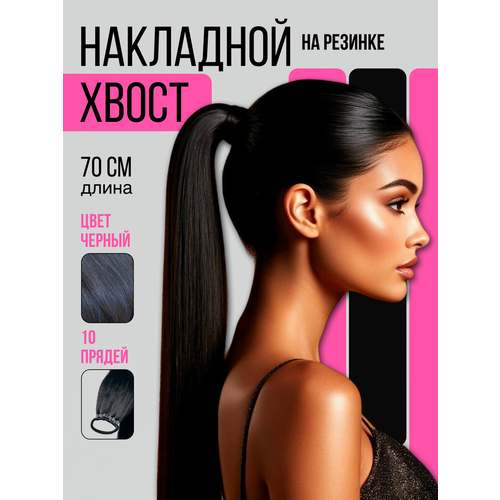 НАЙТИ ВЫГОДНЕЕ - Хвост на резинке 10 прядей, 70 см, цвет черный, искусственные волосы