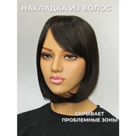 Накладка из волос на голову изготовлена из высококачественного термоволокна, которое выглядит естественно и натурально, неотличимо от ваших собственных волос. Женская накладка стрижка каре. Длина волос от пробора 30 см. Благодаря быстрому и надежному креплению на заколках-клипсах, вы сможете легко и быстро преобразить свою прическу, скрыть проблемные зоны и придать желаемый объем.