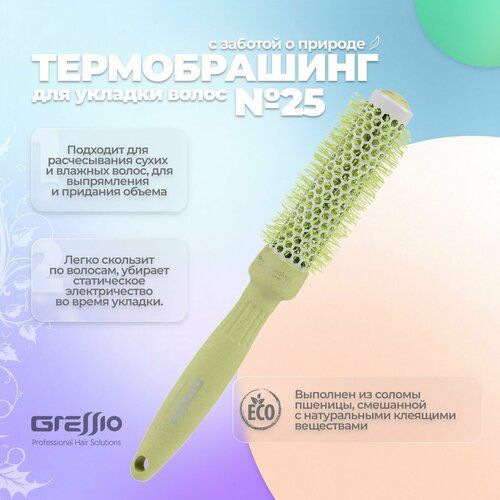 НАЙТИ ВЫГОДНЕЕ - Gressio, Профессиональная расческа брашинг с ионизацией для укладки и выпрямления волос, круглая продувная для объема и челки, диаметр щётки 25 мм, цвет зеленый