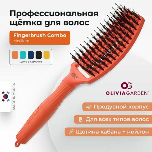 НАЙТИ ВЫГОДНЕЕ - Щетка для укладки Olivia Garden Fingerbrush Care Iconic Boar&Nylon Orange Dream ID1837