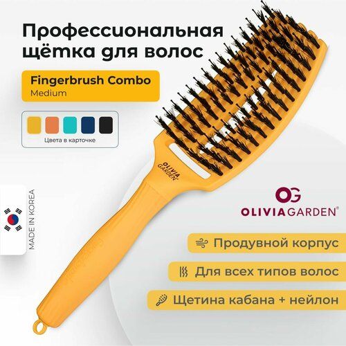 НАЙТИ ВЫГОДНЕЕ - Щетка для укладки Olivia Garden Fingerbrush Care Iconic Boar&Nylon Yellow Sunshine ID1836
