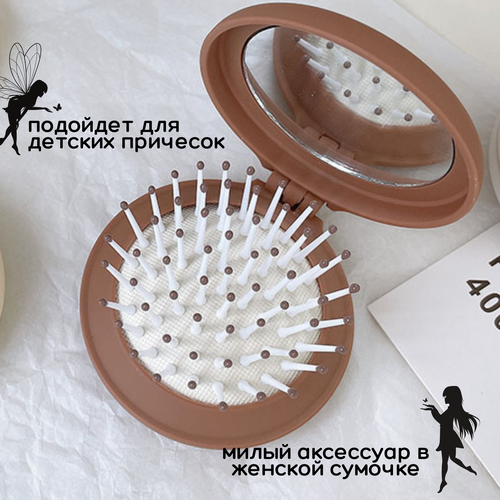 Складная расческа – идеальный выбор для укладки волос в любое время и в любом месте Расческа с зеркалом поможет привести в порядок прическу, а также поправить макияж, находясь вне дома. Гребень изготовлен из прочного пластика и мягкого силикона. Она легко очищается от загрязнений с помощью мыльной воды. Благодаря складывающейся форме без ручки, щетина всегда защищена от пыли, грязи и других внешних факторов. На корпусе имеется объемная фигура мишки, который делает ее более притягательной для детей и взрослых. Гребешок для волос обладает массажным эффектом, которые помогут расслабить напряженные мышцы головы. Компактные размеры круглой расчески позволяют взять ее с собой в офис, поход, на прогулку, а также положить ребенку в садик. Массажная расческа хорошо расчесывает кудрявые и прямые волосы, а также подходит для нарощенных волос. Складное зеркало позволяет посмотреть на себя и поправить укладку. Мини расческу можно использовать для детских волос. Детская расческа для волос станет приятным и одновременно полезным подарком для Ваших близких.