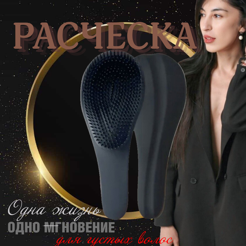Массажная расческа имеет черный цвет и компактные размеры, что делает ее удобной для хранения и переноски.