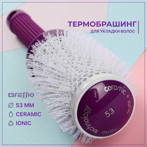 НАЙТИ ВЫГОДНЕЕ - Gressio, Профессиональная расческа брашинг с ионизацией для укладки и выпрямления волос, диаметр щётки 53 мм