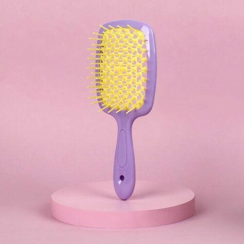 НАЙТИ ВЫГОДНЕЕ - Queen fair Расчёска массажная, широкая, вентилируемая, 8,5 × 20,5 см, PVC коробка, цвет сиреневый/жёлтый