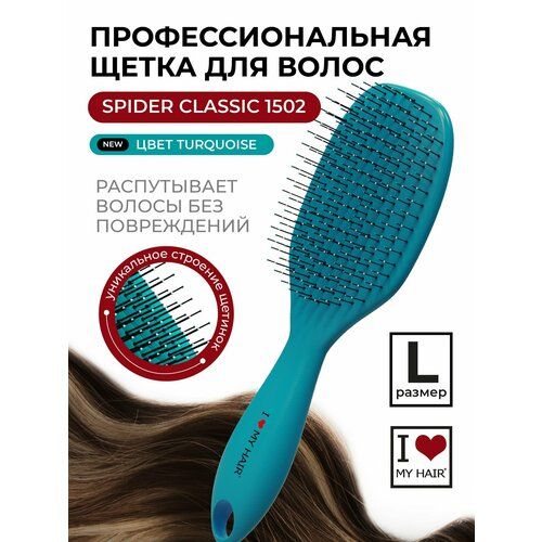 НАЙТИ ВЫГОДНЕЕ - Большая расческа для распутывания длинных и средних волос SPIDER бирюзовая глянцевая, I LOVE MY HAIR