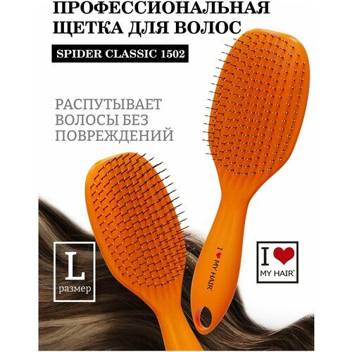 НАЙТИ ВЫГОДНЕЕ - Большая расческа для распутывания длинных и средних волос SPIDER оранжевая глянцевая, I LOVE MY HAIR