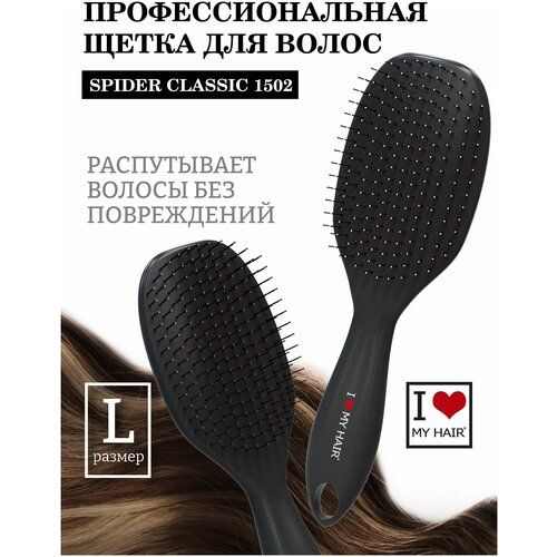 НАЙТИ ВЫГОДНЕЕ - Большая расческа для распутывания длинных и средних волос SPIDER черная глянцевая, I LOVE MY HAIR