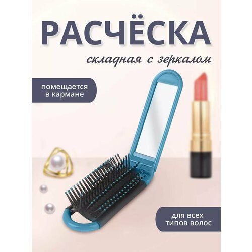 НАЙТИ ВЫГОДНЕЕ - Расческа компактная маленькая для волос массажная складная с зеркалом голубая для волос