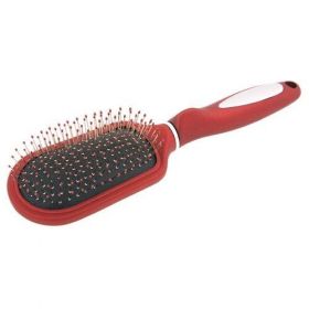 Массажная овальная щетка Titania 1630 красного цвета с металлическими зубчиками. Пластиковые окончания зубцов не травмируют кожу головы. Удобная на ощупь прорезиненная ручка предотвращает скольжение руки во время укладки.
