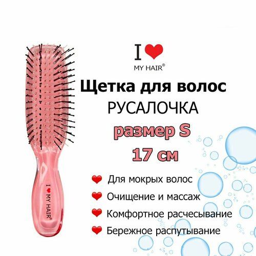 НАЙТИ ВЫГОДНЕЕ - I LOVE MY HAIR Щетка Русалочка 1803 Розовая прозрачная, размер S 17 см, массажная расческа для бережного распутывания мокрых волос и очищения кожи головы