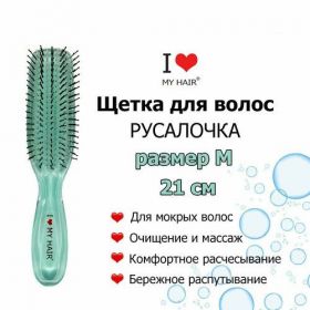 НАЙТИ ВЫГОДНЕЕ - I LOVE MY HAIR Щетка Русалочка 1801 Зеленая прозрачная размер M 21 см, массажная расческа для бережного распутывания мокрых волос и очищения кожи головы