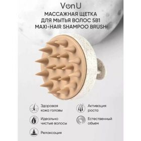 Попробуйте инновационную щетку 5 в 1 для мытья волос, использование которой обеспечивает здоровую кожу головы, идеально чистые волосы, ощущение релаксации, активацию роста волос и естественный объем. Сократите расход уходовых средств благодаря вспенивающей щетки для мыться волос и головы от Von-U. Резиновый механический массажер с пшеничной экологичной ручкой предназначен для ухода за волосами и кожей головы. Позволяет совместить процедуру мытья волос с расслабляющим массажем. Массажная спа щетка помогает распутать локоны, равномерно распределить шампунь, бальзам, кондиционер или маску для волос, повышает эффективность средств по уходу. Массаж с эффектом пилинга улучшает кровообращение, стимулирует естественный рост волос, уменьшает перхоть и выпадение волос. Массажер подходит для всех типов волос любой длины. Мягкие щетинки не раздражают, не травмируют волосы и кожу головы. В процессе использования не повреждает маникюр. Рекомендуем использовать щетку для массажа головы с шампунем, кондиционером и маской для волос Vonu.