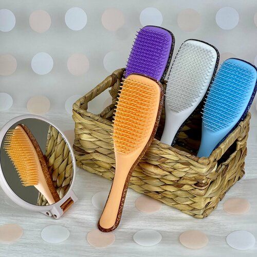 Красивые волосы начинаются с расчески. Расческа для волос мягкая, массажная, профессиональная для ломких и детских волос, цвет фиолетовый SHULIMEI подходит для ежедневного применения, она помогает распутать локоны, снять статическое напряжение, провести массаж кожи головы и улучшить общее состояние прядей. Красивая массажная расческа с блёстками — идеальный аксессуар для ухода за волосами, подойдет как взрослой девушке с тонкими и ломкими или поврежденными волосами, так и маленькой принцессе для бережного ухода и создания красивой прически. Мягкая расческа с гибкими щетинками для распутывания тонких длинных волос совершенно безопасна, она не повредит нежные детские волосы, уникальное двухуровневое строение зубчиков расчески решает все задачи: легко и бережно распутывает волосы от корней до кончиков, предотвращает их сечение, не тянет и не повреждает волосы мягкие зубчики легко скользят по волосам, и предотвращают их повреждение. Блестки придают расчёске яркий и привлекательный вид, делая процесс расчёсывания весёлым и интересным, такое яркое и позитивное изделие поможет поднять настроение. Благодаря удобной ручке ребёнок сможет самостоятельно расчёсываться, развивая навыки ухода за собой. Расческа SHULIMEI в стиле Тангл Тизер является универсальной для всех типов волос, а также идеально расчесывает как сухие, так и влажные волосы, имеет удобную короткую изогнутую ручку, поэтому удобно лежит в руке и не вызывает дискомфорта при расчёсывании. Мягкая расческа для распутывания нежных детских и тонких волос, соответствует всем современным тенденциям, стильный дизайн с блестками и приятная текстура сделает комфортной и увлекательной ежедневную процедуру расчесывания без слез. Расчёска SHULIMEI станет незаменимым помощником в уходе за вашими волосами и нежными волосами вашего ребёнка. Расческа с блёстками фиолетовая, идеальный подарок для себя, дочери, подруге, сестре, маме или коллеге, девочке, девушке, женщине, на 14 февраля, 8 марта, день рождения, Новый год, а также это прекрасный презент без повода, для близкого человека, вам не придётся упаковывать изделие, ведь благодаря красивой упаковке – это уже готовый подарок, уникальная упаковка выполненная из прозрачного пластика защищает от повреждений изделие, а так же это отличный кейс для хранения, удобной мягкой расчески с уникальным дизайном. За инновационной расческой с двухуровневыми мягкими щетинками, для распутывания поврежденных или нежных, детских, тонких, кудрявых мокрых волос, легко ухаживать, достаточно сполоснуть ее под струей теплой воды. Расчёска сделана из безопасных и гипоаллергенных материалов, которые не вызывают раздражения и других побочных эффектов. Размеры изделия: Длина 210 мм, ширина 60 мм, длинна массажной части 105 мм, длина ручки 105 мм, вес изделия в упаковке 91 г.