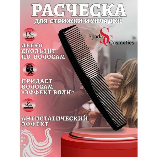 НАЙТИ ВЫГОДНЕЕ - Spada Cosmetics Расческа для укладки черная короткие частые зубчики