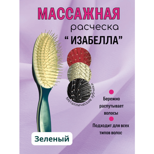 Массажная щетка "Изабелла" представлена в стильном зеленом цвете, который добавит яркости и оригинальности в ваш повседневный образ.