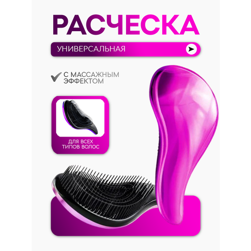 Расческа универсальная легко справляется с запутанными, длинными, мокрыми волосами, не травмирует их и предупреждает ломкость, прекрасно прочёсывает даже самую густую шевелюру, обладает антистатическим эффектом, легко расчесывает пряди от корней до самых кончиков, не повреждая и не выдирая волосы. Благодаря эргономичной ручке расчёской удобно пользоваться даже в душе, с ее помощью удобно распределять бальзамы и маски для волос. Расческа имеет привлекательный дизайн и компактные размеры, что сделает ее незаменимым аксессуаром в Вашей сумочке.