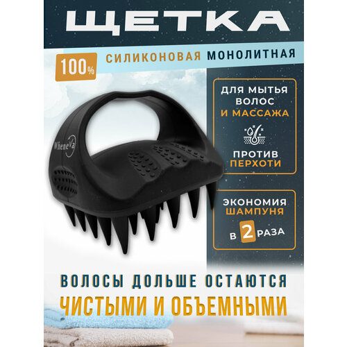 НАЙТИ ВЫГОДНЕЕ - Силиконовая массажная щетка для мытья головы и волос, черная