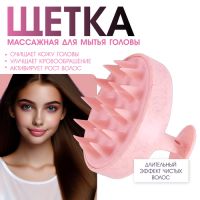 Массажная щетка для мытья головы и волос силиконовая, розовая 4519559872