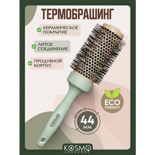 НАЙТИ ВЫГОДНЕЕ - KosmoShtuchki Термобрашинг с керамическим покрытием 44 мм БИО (зеленый), брашинг для укладки волос