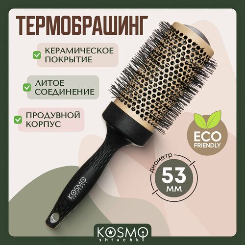 НАЙТИ ВЫГОДНЕЕ - KosmoShtuchki Термобрашинг с керамическим покрытием 53мм БИО (черный), брашинг для укладки волос
