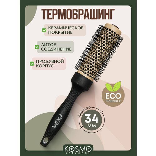 НАЙТИ ВЫГОДНЕЕ - KosmoShtuchki Термобрашинг с керамическим покрытием 34 мм БИО (черный), брашинг для укладки волос