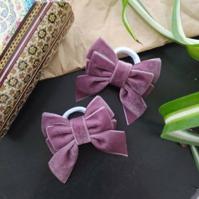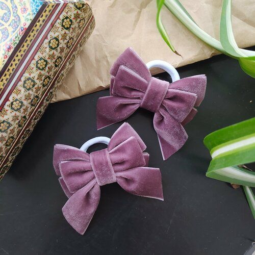 НАЙТИ ВЫГОДНЕЕ - Бант классический для школы бархатный на резинке 2 шт ежевичный, 8x6 см.