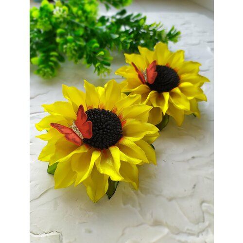 НАЙТИ ВЫГОДНЕЕ - Бантики для девочек жёлтые, подсолнухи